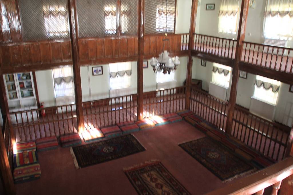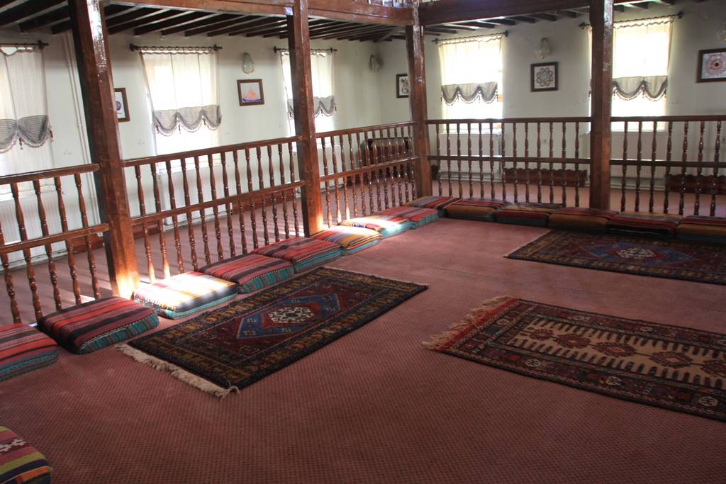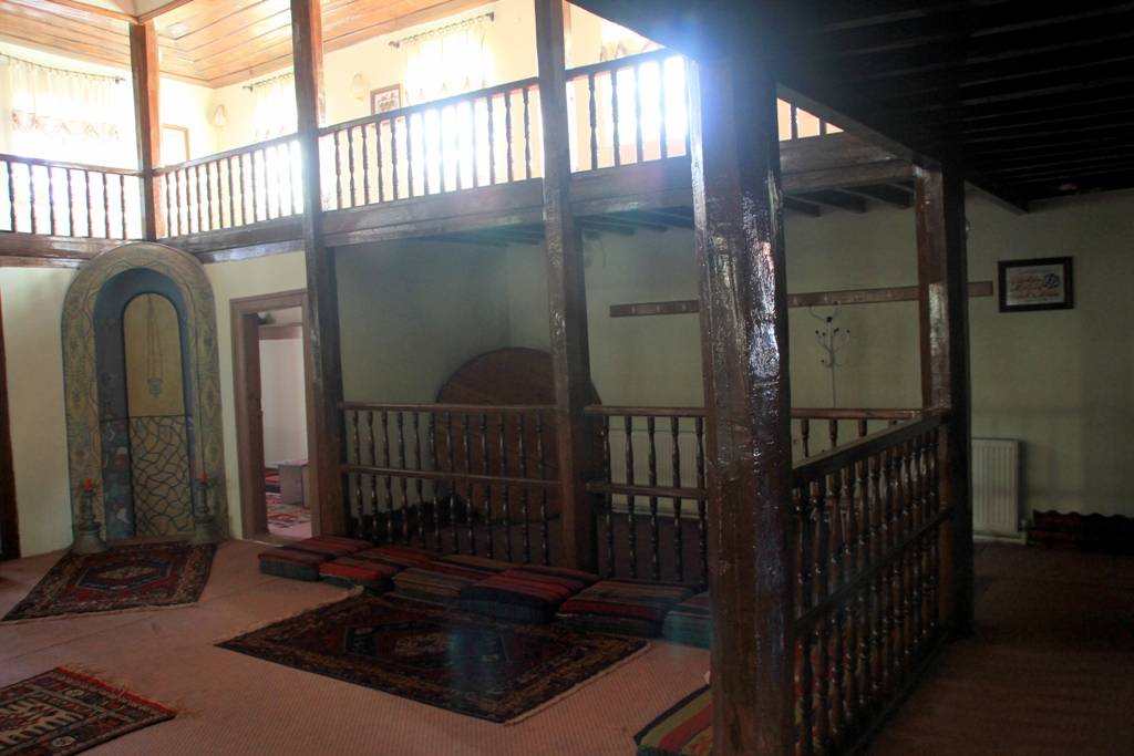 Binaya kuzeybatı yönündeki bir kapı ile girilmektedir. Sağ ve solunda birer misafir odası bulunmakta olup tavan ve tabanı ahşap duvarlar ahşap arası kerpiç dolgudur. Her iki odada önemli bir süsleme elemanı yoktur. Bu iki oda arasındaki koridordan girilerek 12 x12 mİç ölçülerindeki semahane bölümüne geçilmektedir. Semahane’nin tavan ve tabanı ahşap olup dört yönü ahşap mahfillidir. Mahfil korkuluklarının tümüne yakın kısmı kırılmış ve yok olmuştur. Kuzeybatı yönündeki mahfil, haremlik olarak ayrılmış; ahşap çıtalı kafeslerle bölünmüştür. Semahanenin tavan, mahfil ve ahşap kısımlarında önemli bir tezyinat görülmemektedir.