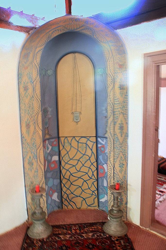 Semahanenin güneyindeki alçı mihrap nişli basit, sade, yarım daire şeklindedir. Üzerine boya ile tekke eşyalarının (şiş) resmi yapılmış, ancak günümüze kadar iyi korunmadığından silik duruma gelmiştir. Mihrabın sağ ve solunda iki küçük mekân çilehane olarak ayrılmış olup bu uygulamanın sonradan yapıldığı, bugünkü durumu ile Rufai tekkesi olduğu izlenimini vermektedir.