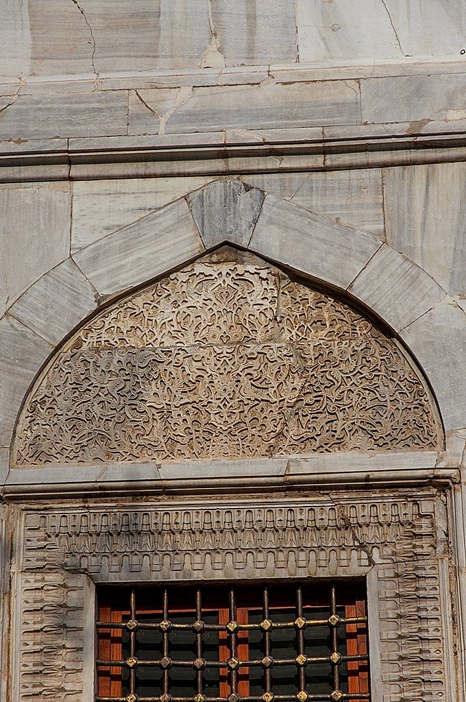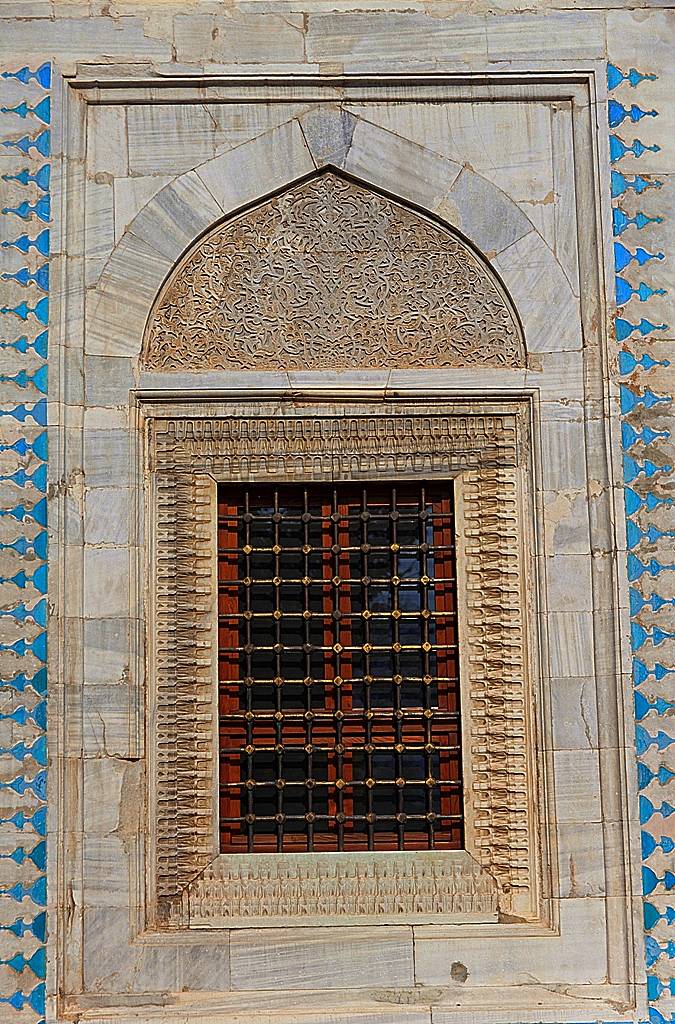 En dar yüzü 7,64 m, en geniş yüzü 10,98 m olan sekizgen prizma bedene sahiptir. Türbe, tümel cepheler (tüm cephelerin açılımı) olarak ele alındığında, kubbe, kasnak ve beden duvarları olarak üç kütlesel mimari elemandan oluşmaktadır. Bu öğeler izleyicinin kolayca algılayabileceği bir şekilde birbirinden ayrılmaktadır. Türbenin cephesinde dikkati çeken bir diğer öğe mermer çerçevedir. Bu çerçeve, cephelerin birleştiği köşeleri, su basmanı ve sivri kemerlerin etrafından dolaşarak saçaklığı çevrelemektedir. Pencereler mermer sövelerle çevrelenmektedir. Pencerenin hemen üzerinde hafifletici (tahfif) kemer, rumi motifli bordürlerle belirgin hale getirilmiştir. Kemerle pencere lentosu arasında kalan timpanon (alınlık) bölümünde ayet ve hadisler yazılı bulunmaktadır. 88888 metrekarelik sekizgen prizma gövdede zeminden aşağıya da devam ederek mezar dairesini oluşturmaktadır. Osmanlı mimarisinde tüm duvarlarının çini ile kaplı olduğu tek türbedir. Sekiz cepheli olan türbenin duvarları ile köşelerde oluşturulmuş mermer çerçeve ve kemerlerin arasında kalan kısımlar turkuaz renkli çinilerle kaplanmıştır. Günümüze kadar geçirmiş olduğu onarımlarda, bu çiniler büyük ölçüde tahrip olmuş, yerine yeni çiniler kaplanmıştır. Sayısı çok azalan orijinal çiniler kapının solundaki yüzde bir araya toplanmıştır (Tayla, 2007).