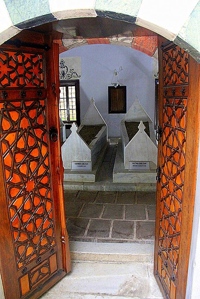 Türbe içerisinde Gülruh Sultan’dan başka kızı Kamer Sultan, Alem şah’ın oğlu Osman ve kızı Fatma’ya ait mermer sandukalar yer almaktadır.