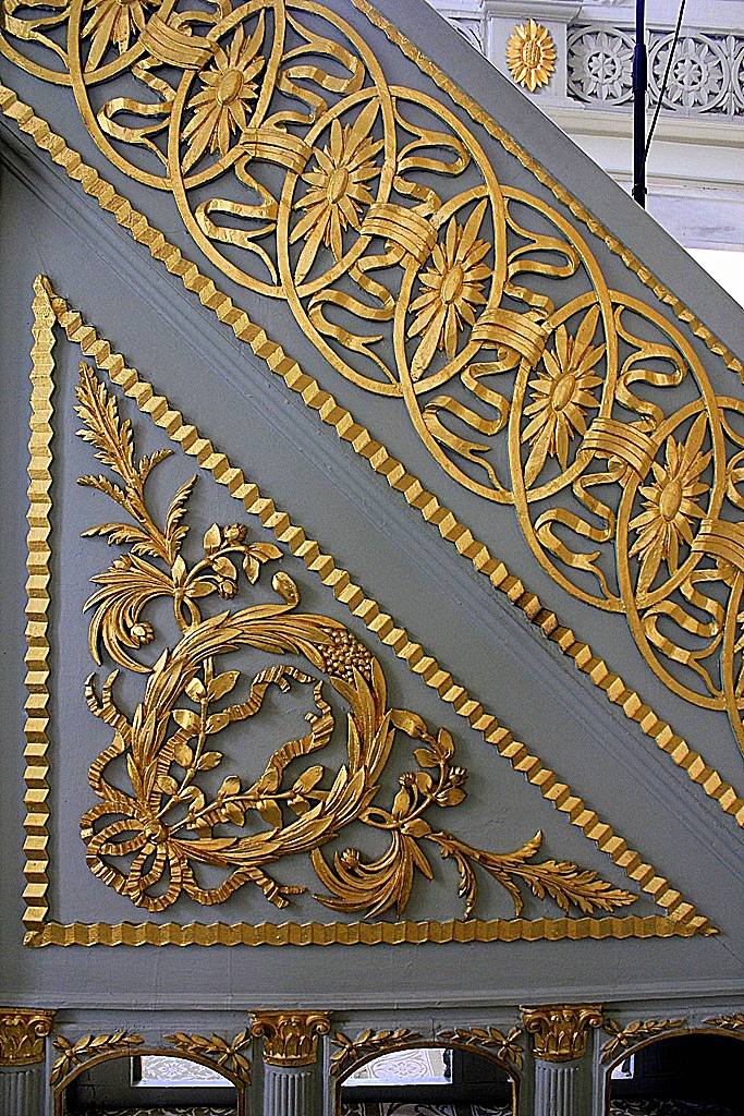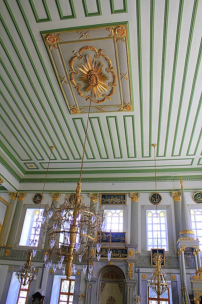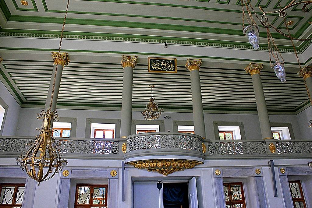 Mahfili taşıyan sütunlarda ise akantus yapraklı, üst kattakilerde ise kompozit başlıklar kullanılmıştır. Hünkar mahfilinde sütunların arasındaki açıklıklara yerleştirilmiş olan, ampir üslupta, bitkisel bezemeli, yaldız kaplı üç adet madeni şebekesi, II Mahmut döneminin tipik süsleme öğelerinden olan ve “Sultan Mahmut Güneşi” olarak adlandırılan ışınsal motiflerle taçlandırılmıştır.