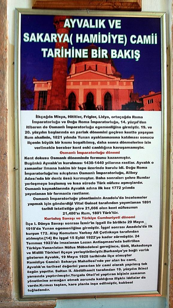 Ayvalık, Sakarya Mahallesindedir. Ayvalık’ ta cami olarak yapılmış tek özgün yapıdır. XIX. yüzyılın ikinci yarısında Sultan II. Abdülhamit tarafından eglektik üslupta yaptırılmıştır. Kareye yakın plânlı cami, kırmızı kesme taştandır. Dört sütunlu bir son cemaat yeri, silindirik bir kasnağa oturan tuğla kubbesi bulunmaktadır. Bezeme yönünden önem taşımamaktadır.
