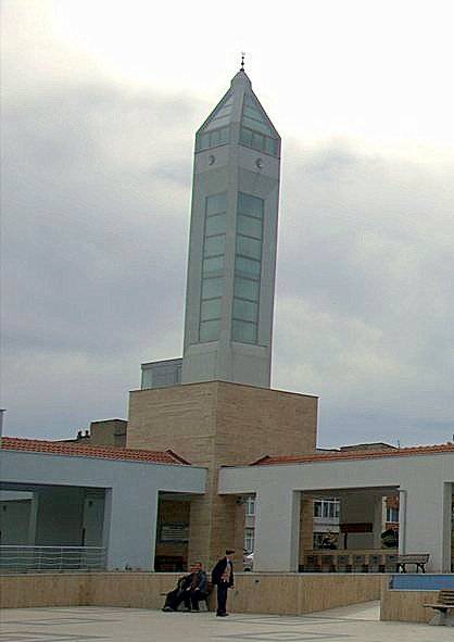 Minaresi caminin güney giriş kapısının sağ köşesinde dikdörtgen prizma şeklinde modern tasarıma uygun hale getirilmiş. Mihrap da farklı tasarımda yapıldığından ilgi çekmektedir.