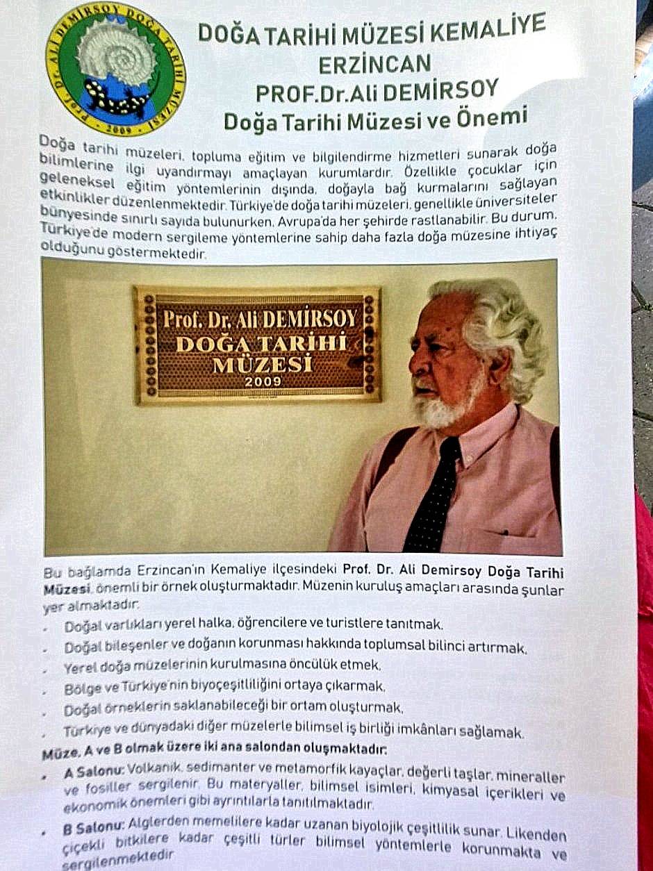 Erzincan’ın Kemaliye ilçesine bağlı Sandıkbağı Mahallesi’nde bulunan Doğu Anadolu Bölgesi’nin ilk doğa tarihi müzesidir. Müze, Erzincan Binali Yıldırım Üniversitesi Kemaliye Hacı Ali Akın Meslek Yüksekokulu’nun bünyesinde hizmet vermekte olup iki büyük salon ve iki odadan oluşan 1.000 metrekare kapalı alana sahiptir.