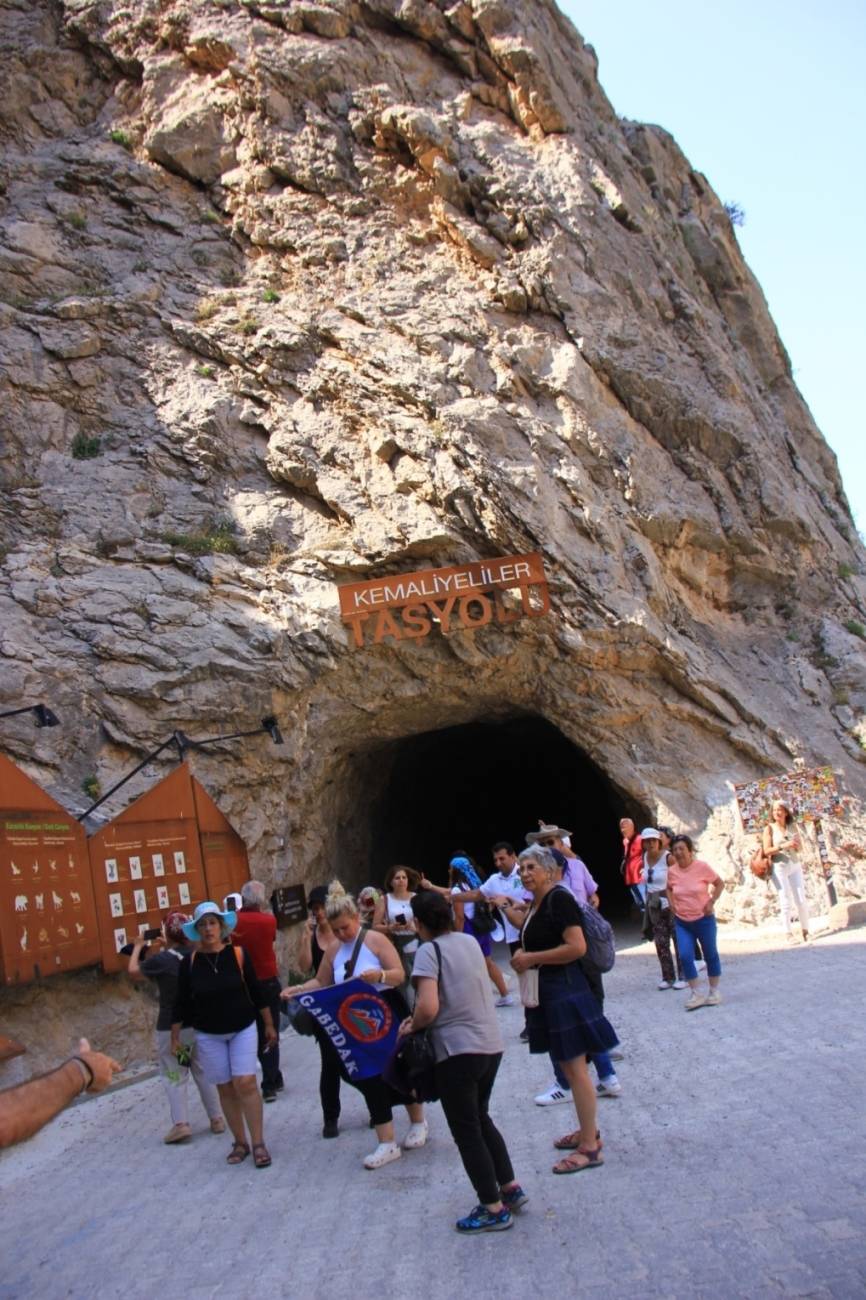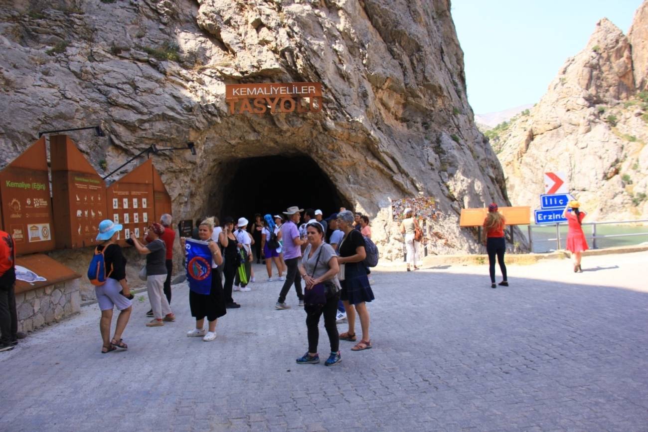 Karanlık Kanyon’da sert kayaların içinden oyularak inşa edilmiş olan Taş Yolu istisnai bir doğal güzelliğe ve estetik öneme sahiptir. Kemaliye’nin ulaşım sisteminde önemli bir yeri olan Taş Yolu, 7 kilometre uzunluğundadır. Yol, 400-500 metre yüksekliğe sahip büyüklü küçüklü 38 tünelden oluşur ve dünyadaki “tehlikeli yollar” arasında yer almaktadır.