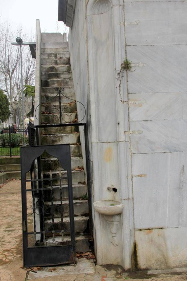 Yani namaz kılınacak alana çeşmenin sol yanındaki merdivenden çıkılıyor.