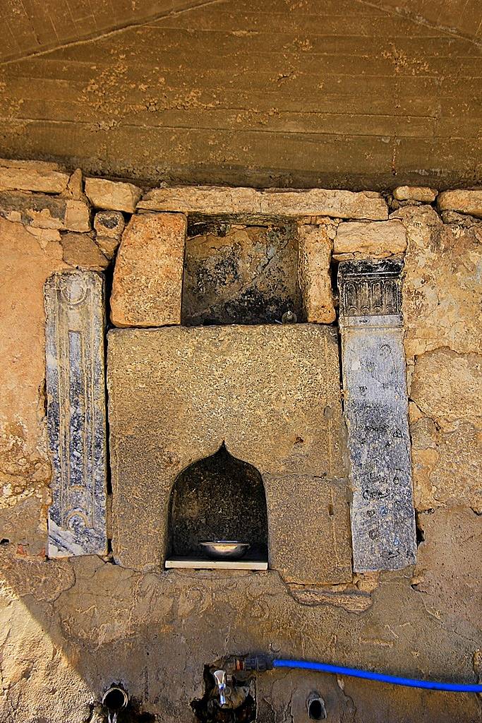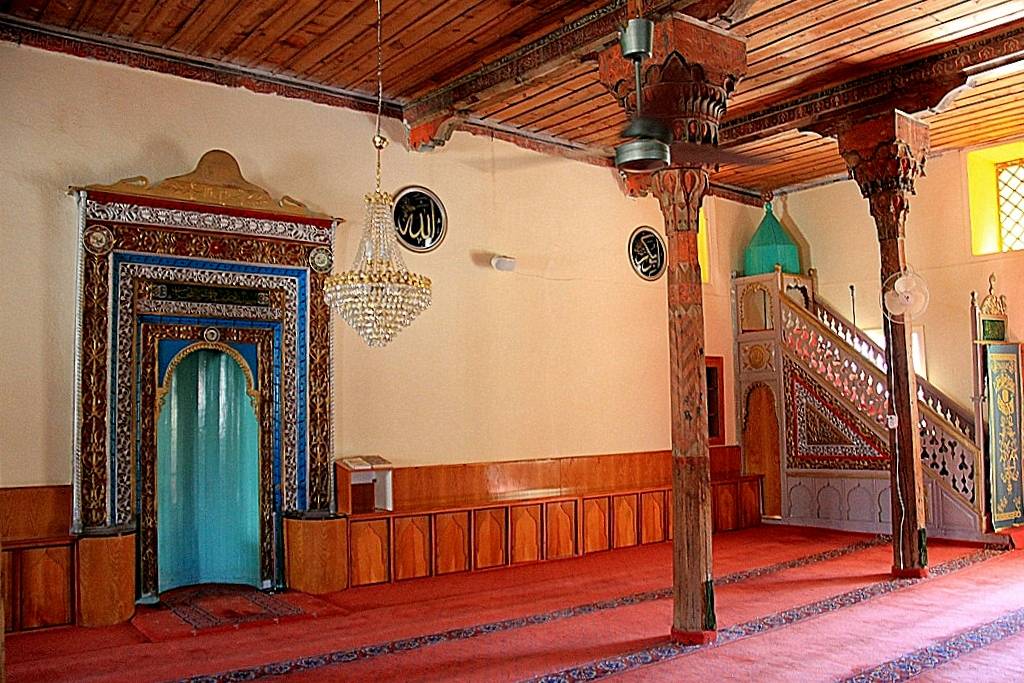 Mihrap: Güney duvarı içine oyulmuş 88 cm çapında 45 cm derinliğinde yarım silindirik bir nişten ibarettir. Niş kavarasının önü dantel şeklinde işlenmiş ahşaptan yarım daire biçiminde bir kemerle süslenmiştir. Mihrap cephesi farklı genişlikte ve değişik motiflerin yer aldığı yine ahşaptan üç süsleme şeridi ile çerçevelenmiştir. Şeritler birbirinden burmalı kordan şeklindeki silmelerle ayrılmıştır. İçteki ilk şeritte kırmızı zemin üstüne bitkisel motif ve yer yer altın yaldız kullanılmıştır