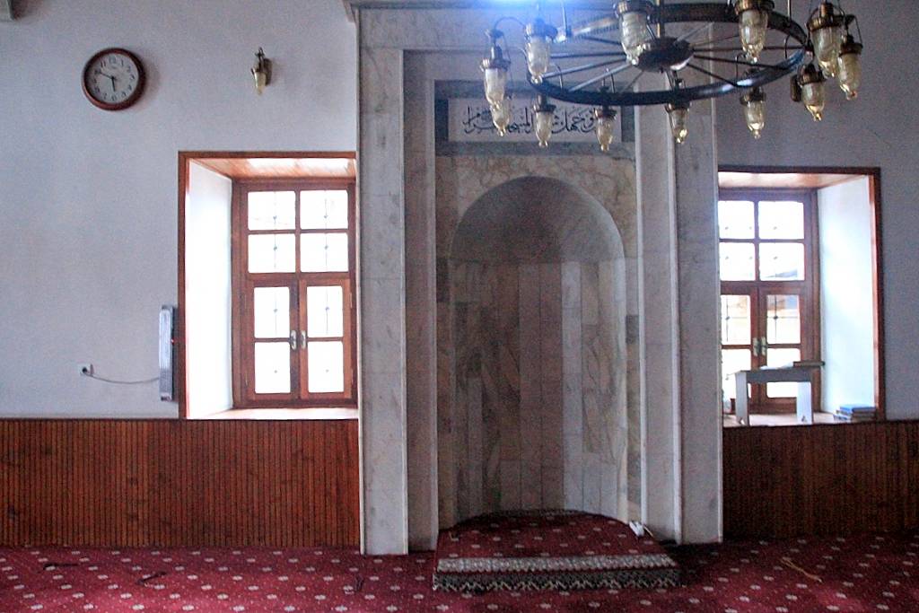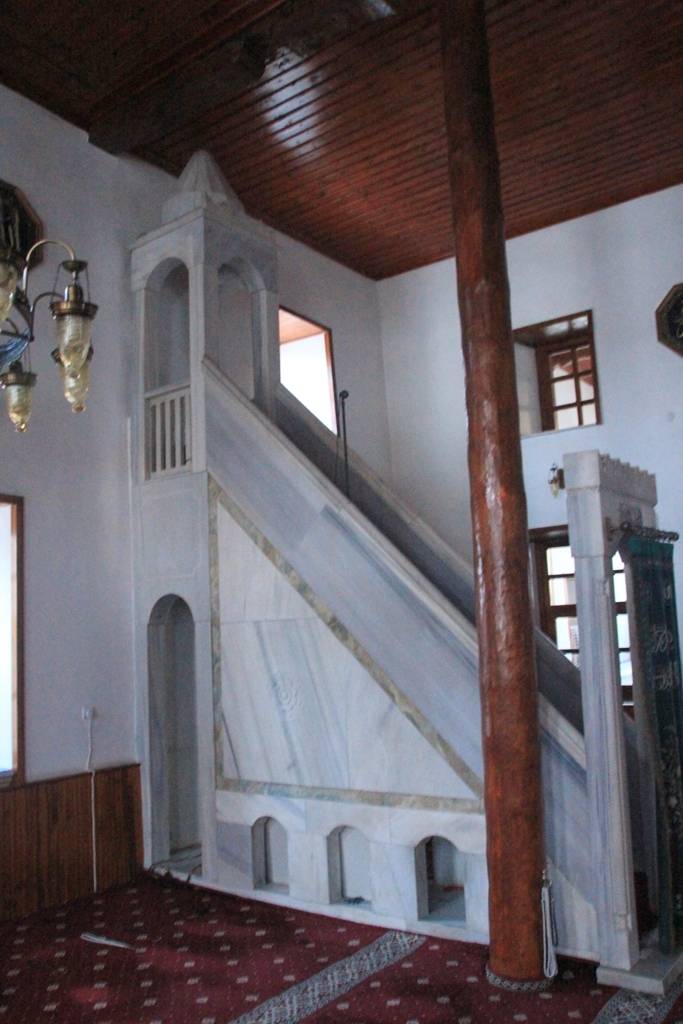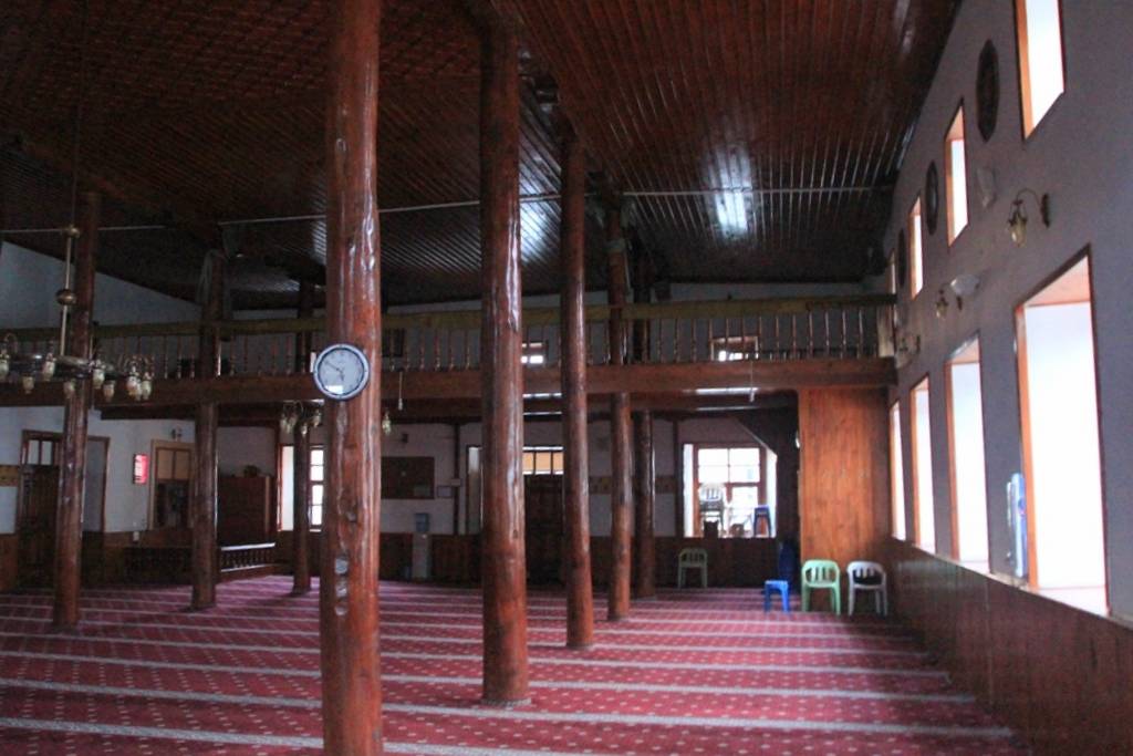 Cami harimine kuzey cephenin ortasında ve batı cephesinin kuzey köşesine yakın yerde bulunan ayrı bir kapıdan girilir. Batıdaki yazlık bölümünün altına dükkanlar yerleştirildiği için bbu bölüm harimden daha yüksektir. Yazlık bölüm, derinlemesine ahşap direkler ile iki sahına ayrılmıştır. Direkler birbirlerine Bağdadi Bursa kemerleri ile bağlanmışlardır. Caminin mihrap ve minberi yenilenmiştir. Düz tahtaların birleştiği balık sırtı oymalı tavanda ajur tekniğinde göbekler bukunmaktadır.
