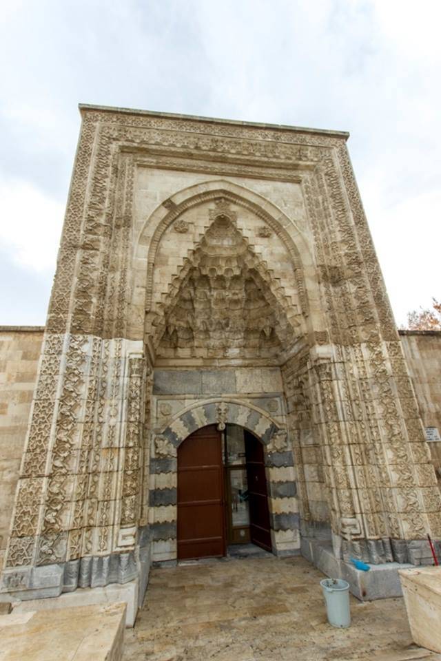 Yapı, kapalı avlulu, tek eyvanlı; avlunun sağında ve solunda öğrenci hücreleri ve revakları bulanan bir medresedir (avlunun üzeri günümüzde açıktır). Kuvvetle ileri fırlayan selaktitli portalı beyaz mermerden yapılmıştır. Geometrik tezyinatlı yazı ve bitkisel dekorludur. Sağda ve solda, bitki motifli iki sutunçe ile, içte iki mihrap nişi, portalin ortasında, yukarıda stelaktitler içerisinde kanatlarını açmış bir (orjinali kaldırılmış, yerine onarımda yeni bir kuş işlenip koyulmuş) kuş figürü bulunmaktadır. Kapı mor ve beyaz mermerden, kilitleme tekniğinde yapılmış basık kemerlidir.