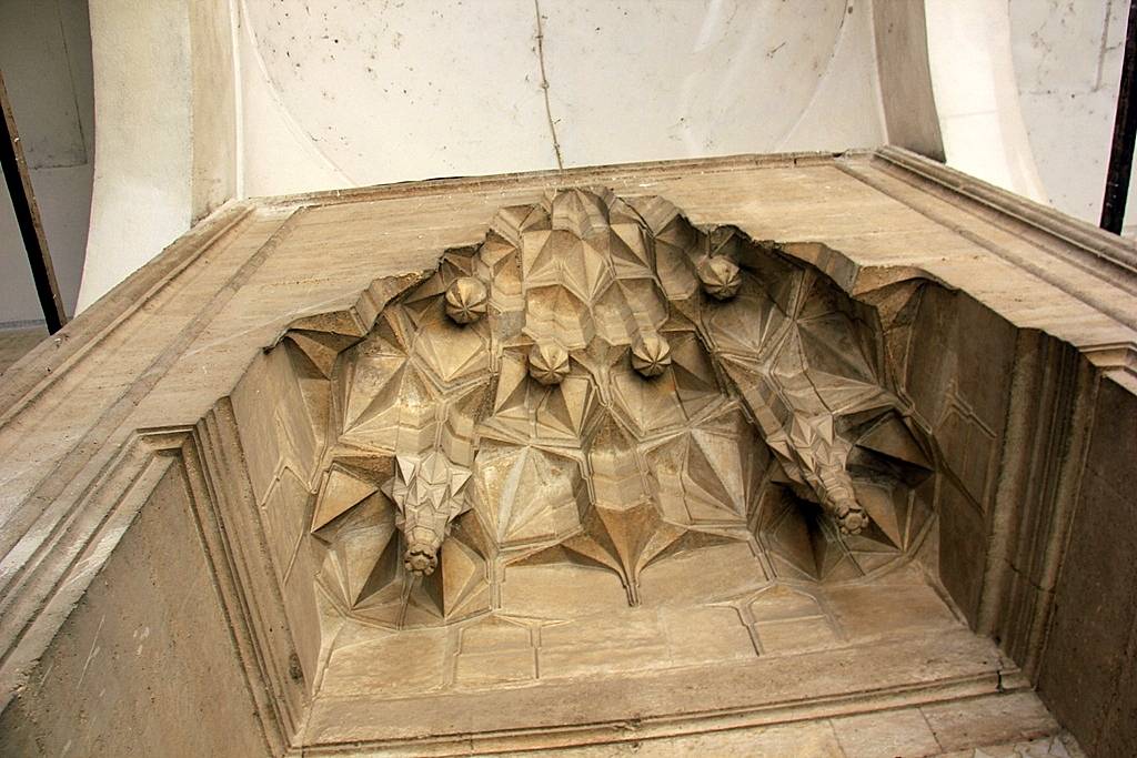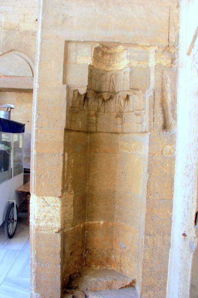 Kadınlar ve erkekler bölümünün girşi ayrı yerlerdendir. Erkekler soyunmalığına girişin cephesinde bir revak bulunur. Bu yönüyle Sultanahmet’teki Haseki Hüreem Sultan Hamamı ile benzerlik gösterir. Hamamın doğu yönündeki sivri kemerli sütunlu görkemli bir girişle erkekler bölümünden soğukluk bölümüne girilmektedir. Bu bölümün çift kanatlı giriş kapısının üzerindeki yay kemerin içerisinde biri ters diğeri düz olmak üzere renkli taşlardan palmet motifleri yerleştirilmiştir. Ancak daha önce burada var olan kitabe günümüze gelememiştir.