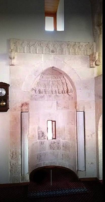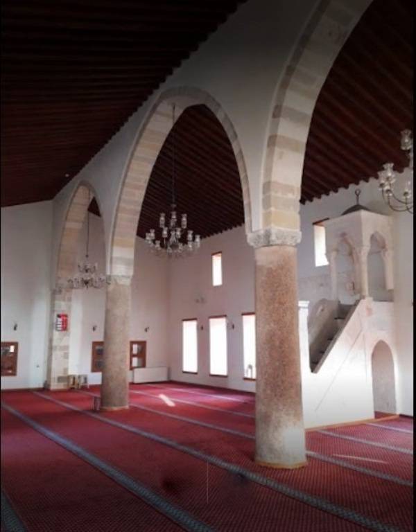 14-15. yüzyıllar arasında yapıldığı tahmin edilir. Minarenin altındaki taç kapıdan girilen bir tünel ve onbir basamaklı bir merdivenle şadırvanlı avluya ulaşılır. Harimi örten ahşap çatı ortadaki üç kemer üzerine oturmuştur. Mihrabın iki yanında kendi ekseni etrafında döndürülebilen iki taş sütüncesi bölgede mevcut tek örnektir.