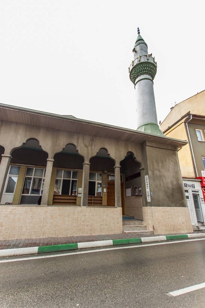 Camii 1715 yılında Ömer Bey tarafından yaptırıldığı için Ömer Bey adını almıştır. 200 m2 olan camii birçok kez onarım gören caminin minaresi özgünlüğünü korumaktadır.