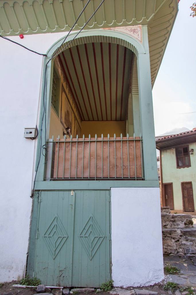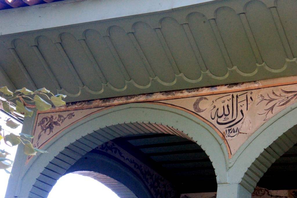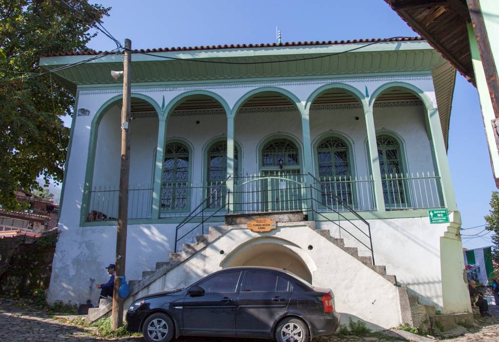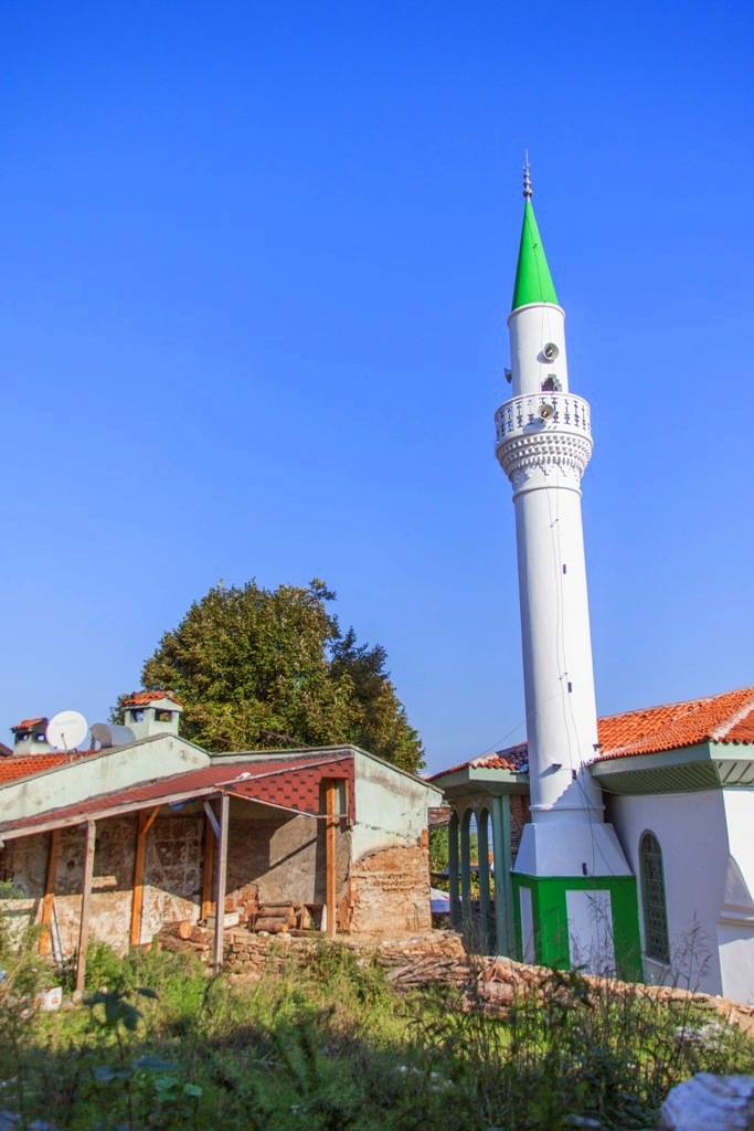 Köy meydanında bulunan cami, 17. yüzyılda yaptırılmıştır. Kestane ağacından ahşap ve kubbesiz olarak inşa edilen cami, Selçuklu mimarisinin özelliklerini taşımaktadır. 200 m2 iç alana sahip olan cami, Osmanlı döneminde batı tarafı mescit, doğu tarafı ise medrese olarak kullanılmıştır. 1940 depreminde çatı kısmı yenilenmiş, mescit ile medrese arasındaki bağdadiye kaldırılmıştır. Doğu ve batı istikametindeki beşer metrelik uzun saçaklar, Selçuklu mimarisinin en belirgin özellikleridir. Kapı üzerindeki tuğralar ve saçaklardaki gül, lale, karanfil motifleri silinmeye yüz tutmuştur. Yine kapı üzerinde Selimiye ve Sultan Ahmet camilerinin resimleri vardır. Cami içindeki duvarlar üzerinde bulunan hüsn-ü hat örnekleri bugün maalesef bilinçsizlik nedeniyle boya altında kalmıştır. Tek şerefeli olan minare, 1973 yılındaki onarımda yenilenmiştir. Caminin şadırvanı olduğu sanılan sekizgen mermer havuz, cami karşısındaki kahvenin bahçesinde yer alır.