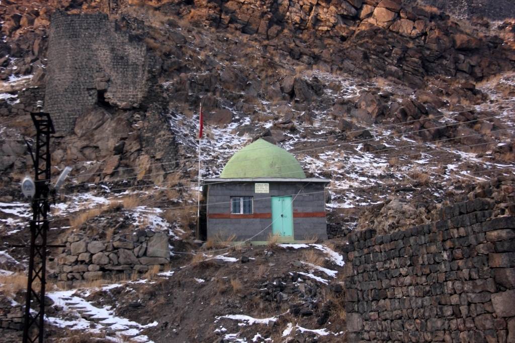 Kars Kalesi'nden inişte yoldan inmeyip hafif karla kaplı araziden bu türbeye doğru iniş yaptık ve yanından geçtik. Kalenin bulunduğu tepenin yamacında bulunan bu türbede Halil ve Teyfik adlı iki şehit asker gömülüdür. Bu iki şehit asker Hasan Harakani Hazretleri ile birlikte Selçuklular'In Anadolu'ya girişini kolaylaştırmak için Horasan'da düşmanla savaşırken şehit düşen ilk Alperenlerdir.