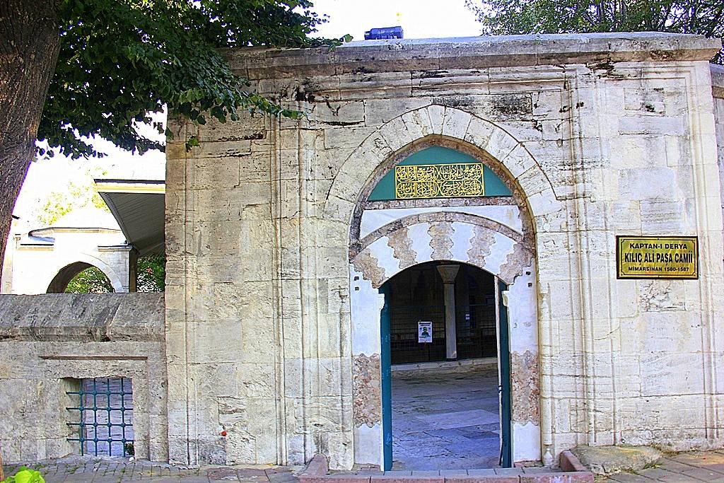 İstanbul Boğazı’nın Rumeli yakasında Beyoğlu Tophane meydanında, Meclisi Mebusan Caddesi’ne cepheli olarak 1580 yıllında Kılıç Ali paşa tarafından Mimar Sinan’a inşa ettirilmiştir. Külliye camii, hamam, medrese, türbe ve çeşmeden oluşmaktadır. Katıldığı İnebahtı Savaşı’nda gösterdiği yararlıklar ve donanmaya yaptırdığı manevralarla ünlenen paşaya Sultan II. Selim kendisine Kılıç adını ve Kapudan-ı Derya’lık makamını verir. Kılıç Ali Paşa Külliyesi Tophane’de denizin doldurulması ile elde edilen zemin üzerine inşa edilmiştir. Bundan dolayı Boğaziçi kıyısındaki yalı camilerden biridir. Paşanın namını ebedileştirecek bir eser olan külliyenin ortaya çıkışının ilginç bir öyküsü var. Cami inşa ettirmek üzere devrin sultanından arazi ve izin talebinde bulunan paşaya sultan cevaben “O, deryaların serdarudur, varsın muktedirse camiini de derya üzre yapsun! Yoksa O’na karadan bir karış yer vermem!” der. Bunun üzerine Kılıç Ali Paşa “Hünkarımız doğru derler, bizim evimiz de, mekanımız da deryalardur; o halde mabedimizin de derya üzre inşası uygun olur!” der ve günümüze kadar gelen külliye Mimar Sinan’ın idaresinde deniz üzerinde ortaya çıkar.