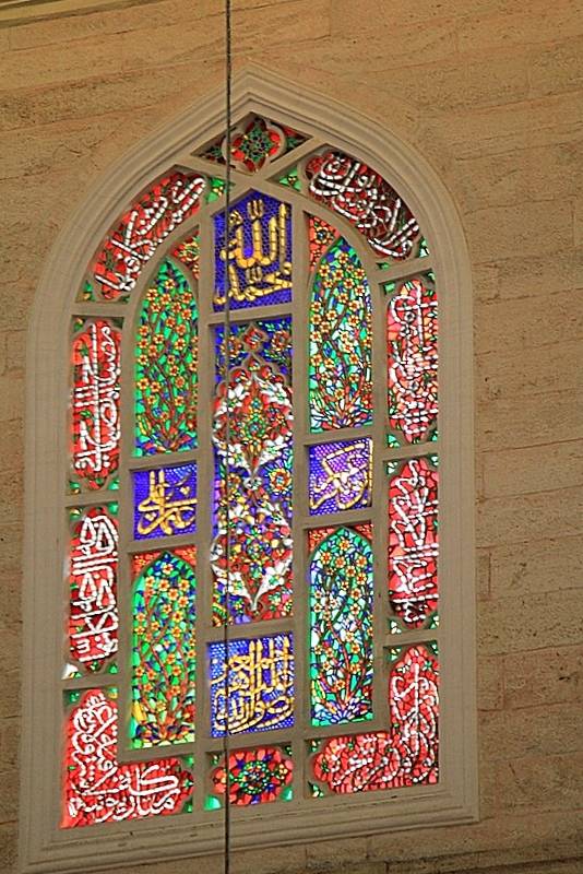Bu caminin içinde ve dışında olan Ahmed Karahisari hattı bugün de ne yazılmıştır ne yazılsa gerektir. İlkin büyük kubbenin ta ortasında Allah göklerin ve yerin nurudur. Onun nurunun sıfatı sanki içinde bir çerağ bulunan bir hücredir. O çerağ bir sırça içindedir. O sırça kandil de sanki bir inci gibi parıldayan bir yıldızdır ki güneşin doğduğu yere de battığı yere de nisbeti olmayan mübarek bir ağaçtır, zeytundan tutuşturulup yakılır. Onun yağı kendisine bir ateş dokunmasa da hemen ışık verir ki nur üstüne nurdur. Allah insanlara meseller irad eder. Allah her şeyi hakkıyla bilendir' ayetini yazmada yedi beyzasını göstermiştir. (Nur 35). Mihrab üzerindeki yarım kubbenin içinde... (Enam 79) ayeti. Ve dört payelerin köşesinde Allah, Muhammed, Ebubekir, Ömer, Osman, Ali, Hasan, Hüseyin yazılmıştır. Ve minberin sağındaki pencere üstünde... (Cin 18) ayeti yazılıdır. Üst pencereler üzerinde Allah'ın güzel adları yazılıdır. Ve bu camiin 5 kapısı vardır. Sağ tarafta imam kapusu, sol tarafta hünkar mahfili, altında vüzera kapusu, ve iki yan kapuları var, sol yan kapu üzerinde (Rad 24)yazılıdır, kıble kapusu üzerinde sol taraftaki kitabenin içinde Ketebehu Ahmed el Karahisari sene..deyü tahrir olunmuştur.