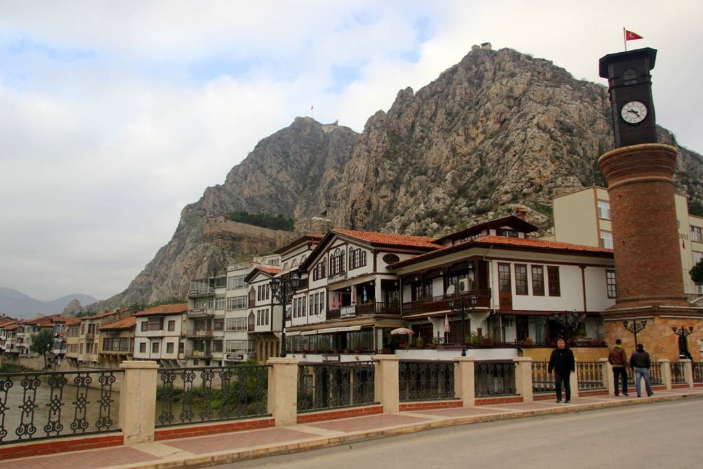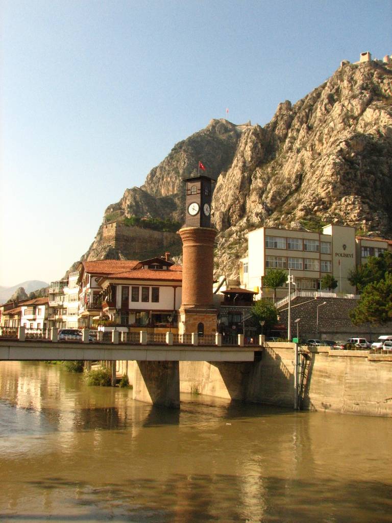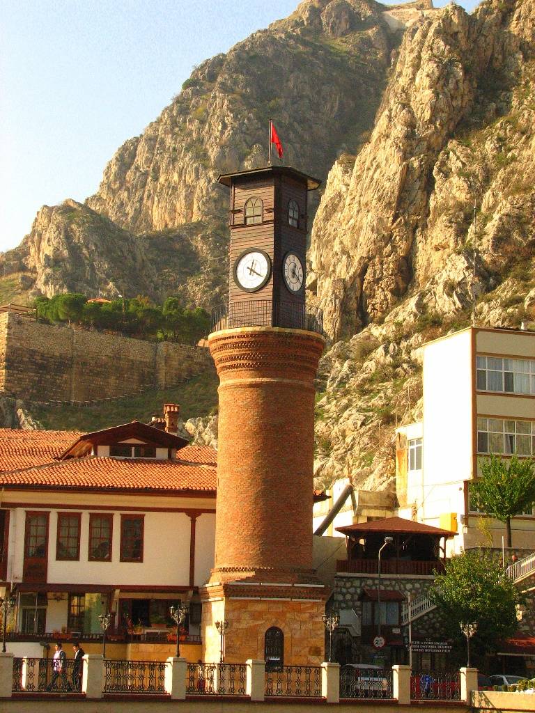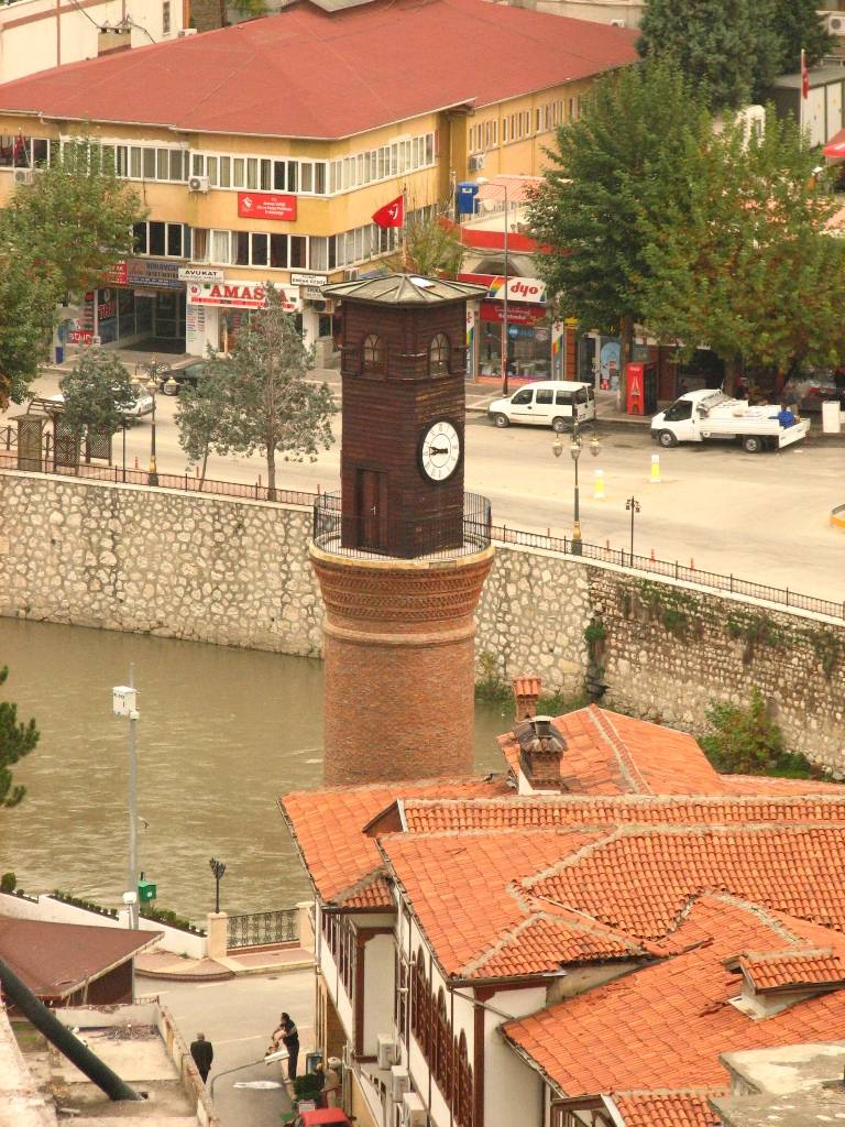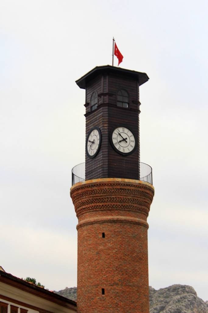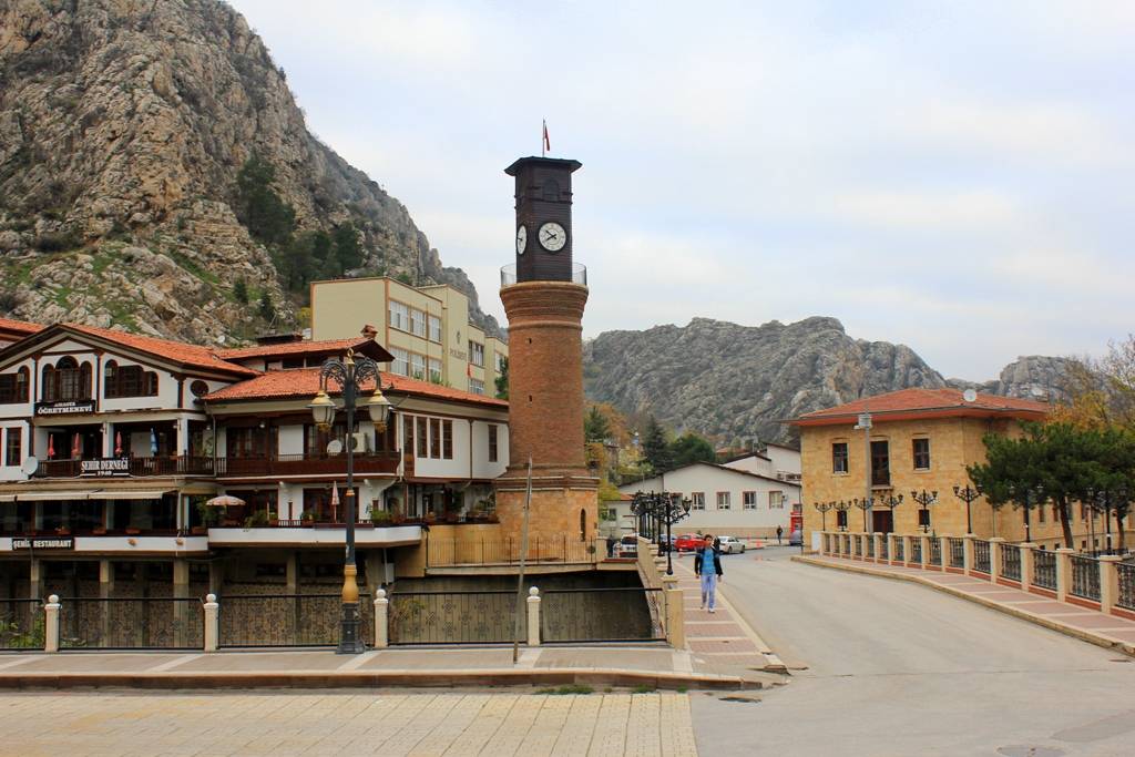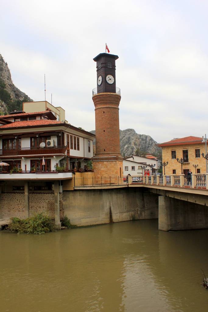 Hükümet Konağı’nın hemen yanında, köprünün kuzey başında bulunan Saat Kulesi ilk kez 1865 yılında Amasya Valisi Ziya Paşa tarafından yaptırılmıştır. 1940’ta yeni köprünün inşası sırasında hasar gördüğü için yıktırılmış, 2002 yılında yeniden inşa edilmiştir. Zamanı göstermesinin yanı sıra Saat Kulesi’nin Amasyalılar için ayrı bir anlamı vardır. Kulenin kuşaktan kuşağa bir kıssa gibi anlatılan hikayesi şöyledir: Anadolu’nun işgali sırasında Merzifon’a yerleşen İngiliz birlikleri Amasya’da karışıklıklar çıkartmak ve halkı tahrik etmek için bir takım kışkırtma eylemlerine girişmişlerdir. Merzifon'dan gelen iki İngiliz subayı Mondros Mütarekesi'nin 4. maddesini gerekçe göstererek Amasya cezaevindeki bütün mahkûmların serbest bırakılmasını isterler. Ancak başta Mutasarrıf Sırrı Bey olmak üzere hapishane müdürü ve komiser İsmail Efendi İngilizlerin isteklerine boyun eğmez ve İngilizlerden Amasya'yı hemen terk etmeleri istenir. Bu isteği yerine getirmekten başka çare bulamayan İngilizler Amasya'yı terk ederler. Ancak ertesi gün başlarında İngiliz temsilcisi Solter’le birlikte tekrar Amasya’ya gelirler. Bu defa geliş sebepleri farklıdır: Mutasarrıf Sırrı Bey'i tutuklamak. Bu arada bir grup İngiliz askeri, Saat Kulesi'nin kapısını kırarak içeri girer ve kulenin tepesinden Türk Bayrağını indirip, İngiliz bayrağını çekerler. Bu olay Amasya’da büyük bir tepkiye yol açar. Meydana toplanan kalabalık tam isyanın eşiğindeyken şehrin ileri gelenlerinden Müftü Hacı Tevfik Efendi, Kadı Ali Himmet Efendi, Hoca Bahaeddin Efendi ve Vaiz Abdurrahman Kâmil Efendiler meydana yetişerek halkı sakinleştirirler. Şehir halkı, Amasya’da kargaşa çıkarmak isteyen İngilizlerin bu oyununa gelmekten kurtulmuştur ama hepsi çok üzüntülüdür. Gözyaşlarını tutamayan Kadı Ali Himmet Efendi’nin üzüntü ve öfkeyle "Allah büyüktür, bizim gibi asil bir milletin memleketinde yabancı bayrağı dalgalanamaz." diye sesini yükselttiği sırada hiç beklenmeyecek bir uğultu yükselir. Aniden çıkan fırtına herkesin korkuyla yere yığılmasına neden olur. Kısa süren bu fırtına, Saat Kulesi'nin tepesinde dalgalanan ingiliz bayrağı'nı param parça ederek Yeşilırmak üzerine savurup atmıştır. Ayağa kalktığında olan biteni gören Amasya halkını büyük bir mutluluk sarmıştır. Gördükleri bu inanılmaz olay karşısında korkan İngiliz askerleri geri çekilerek Hükümet Konağı'na zorlukla sığınırlar. Halk ise kuleden indirilen Türk Bayrağı'nı besmele ve tekbir sesleriyle tekrar yerine çeker.